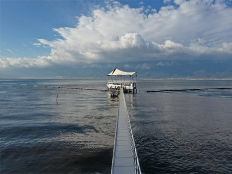 采用高效可調(diào)式渦井取藻、藍藻囊團破壁、一體化二級強化氣浮等核心技術(shù),岸上站點藻水分離系統(tǒng)集成了藍藻打撈、脫氣沉降、氣浮分離、脫水等多個環(huán)節(jié)的技術(shù)和設(shè)備,形成了可規(guī)?;凸S化處理藍藻的基站。適用于藍藻水華長期規(guī)律性、大范圍聚集區(qū)域的常態(tài)化應(yīng)急處置。